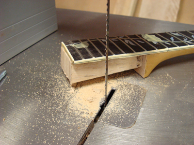 I needed another breather after inspecting the guitar. What a waste, I thought. Had it been used to dig a ditch, to chop wood or what. At some point the neck had been glued with epoxy together with various spare wood. As you might guess, all the measurements were off and the neck pointed to a completely wrong cardinal direction. Separating the neck and building a new neck pocket took some time. But easy does it....