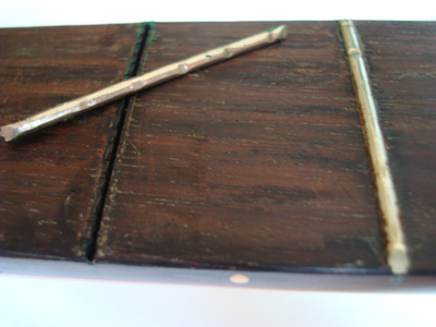 Ohessa esimerkki huoltoon tulleesta soittimesta. Enää ei riittänytkään nauhojen hionta. Nauhat oli loppuunajettu ja päätettiin vaihtaa uudet. Tässä yhteydessä plaanaan aina otelaudan niin että saadaan suora siisti pohja nauhatyölle. Nauhat profiloidaan hyvän tatsin aikaansaamiseksi. Samalla käydään talla ja satula läpi.